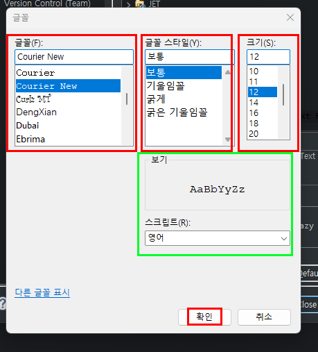 자신이 원하는 글꼴 / 글꼴 스타일 / 크기 를 설정한다.