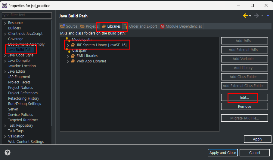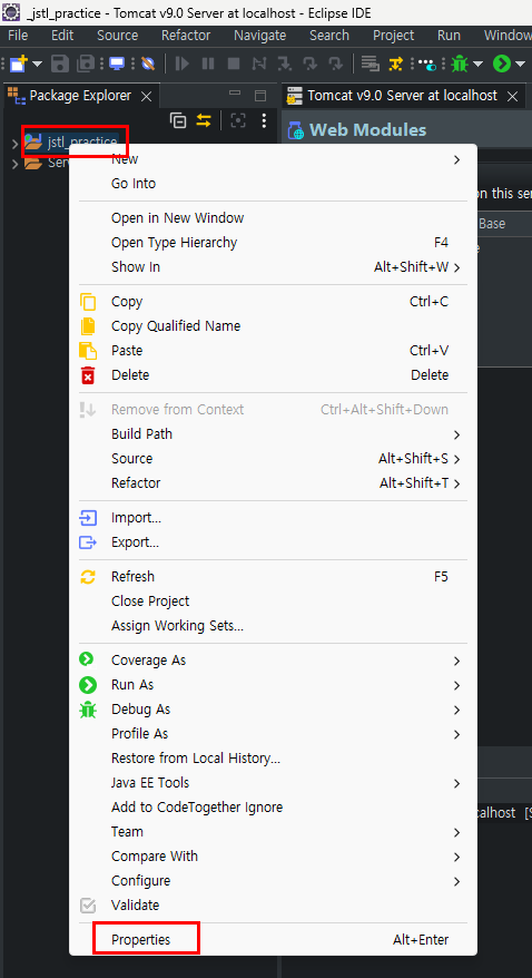 JSTL과 JSP을 연습하기 위한 Eclipse와 Project의 개발 환경 기본 세팅은 여기서 끝!