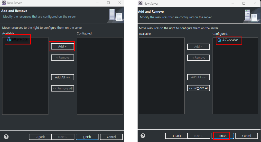 그럼 Available(좌)에 있던 프로젝트가 Configured(우)로 이동한다.
