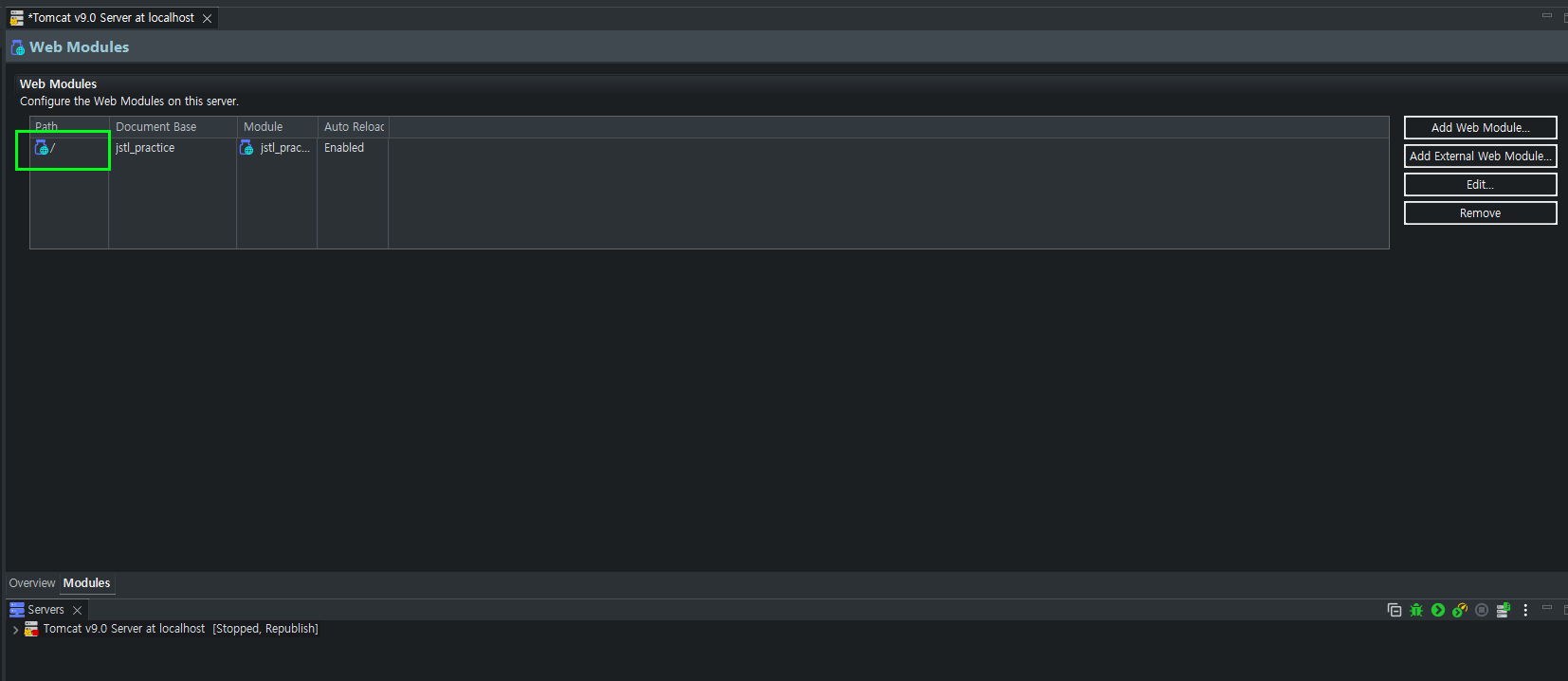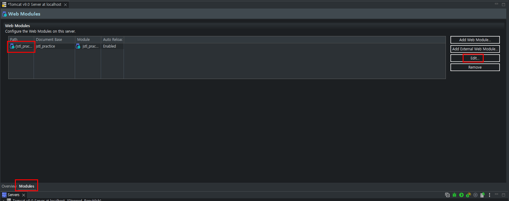 또한 Preference에서 설정했던 것들 중에 Tomcat이 등장했던 부분들도 다시 확인하는 것을 추천한다.