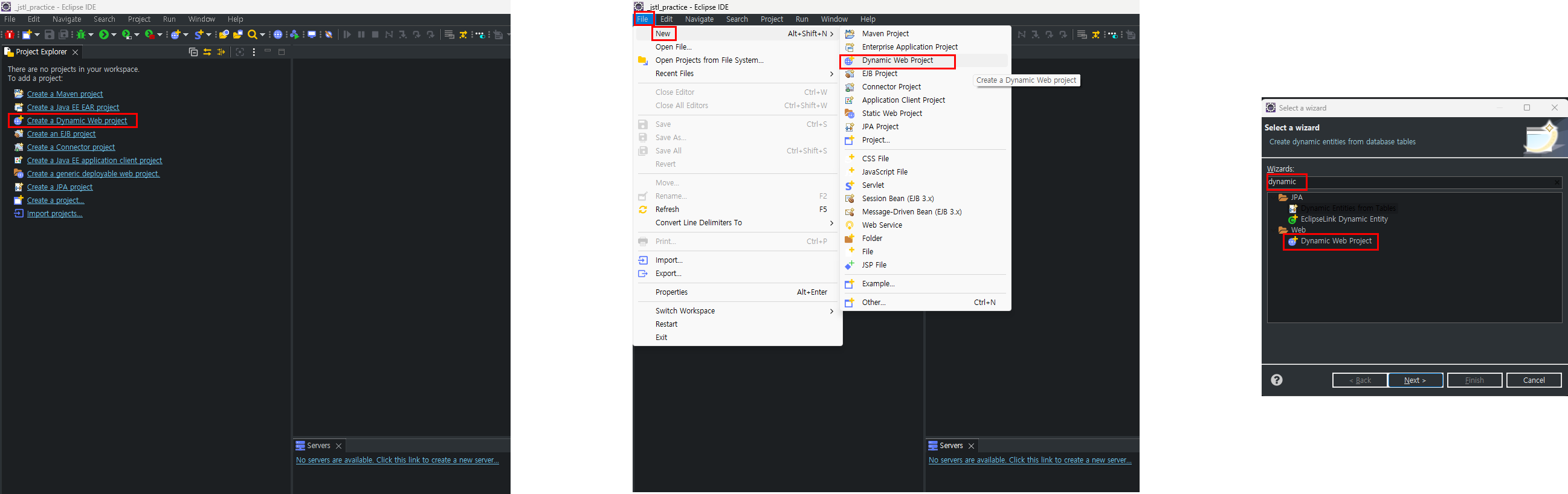 - 상단 바에서 File > New > Dynamic Web Project 를 생성