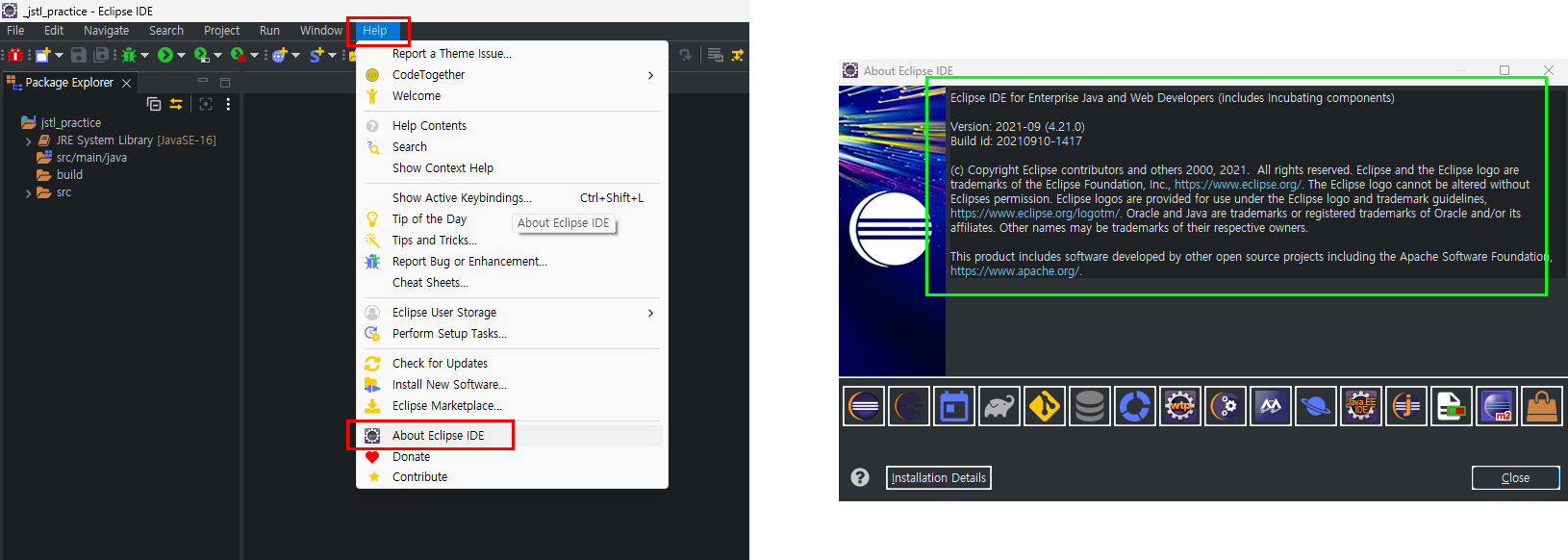 그러나, Dynamic Web project를 생성할 수 없다면 Help > About Eclipse IDE를 확인한다.