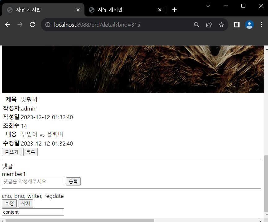 상세 페이지 댓글 등록 후