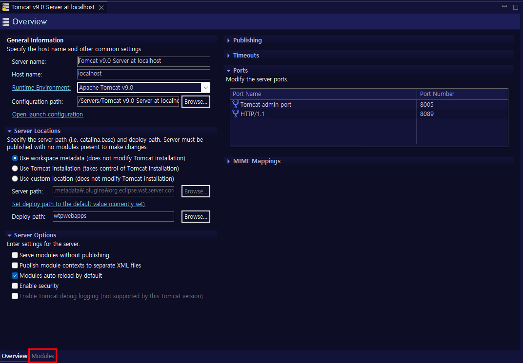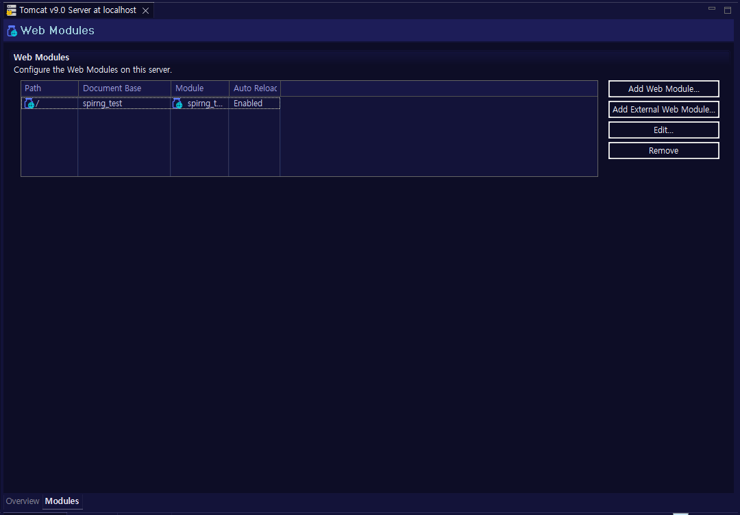 저장까지 완료했다면 하단에 Modules 탭을 클릭한다.