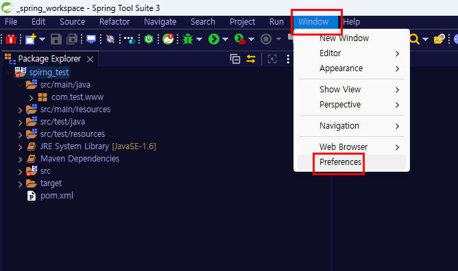 상단 메뉴바에서 Window > Preferences를 클릭한다