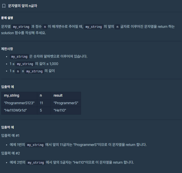 프로그래머스 Lv.0 문자열의 앞의 n글자개발자가 되기까지 (2023.08.16~2024.04.15)/[Algorithm] Programmers ver.Java2023. 12. 24. 00:03