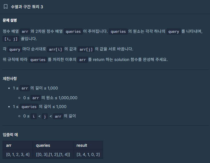 프로그래머스 Lv.0 수열과 구간 쿼리 3개발자가 되기까지 (2023.08.16~2024.04.15)/[Algorithm] Programmers ver.Java2024. 1. 31. 14:40