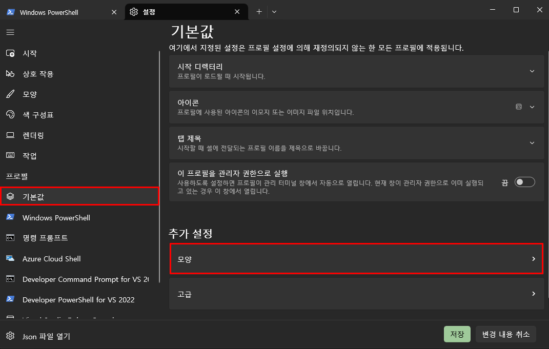 oh-my-posh init pwsh --config "$env:POSH_THEMES_PATH\테마이름.omp.json" | Invoke-Expression