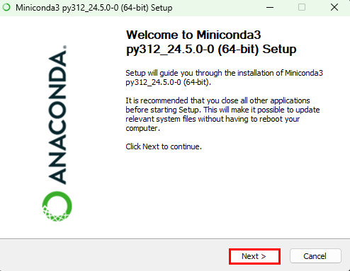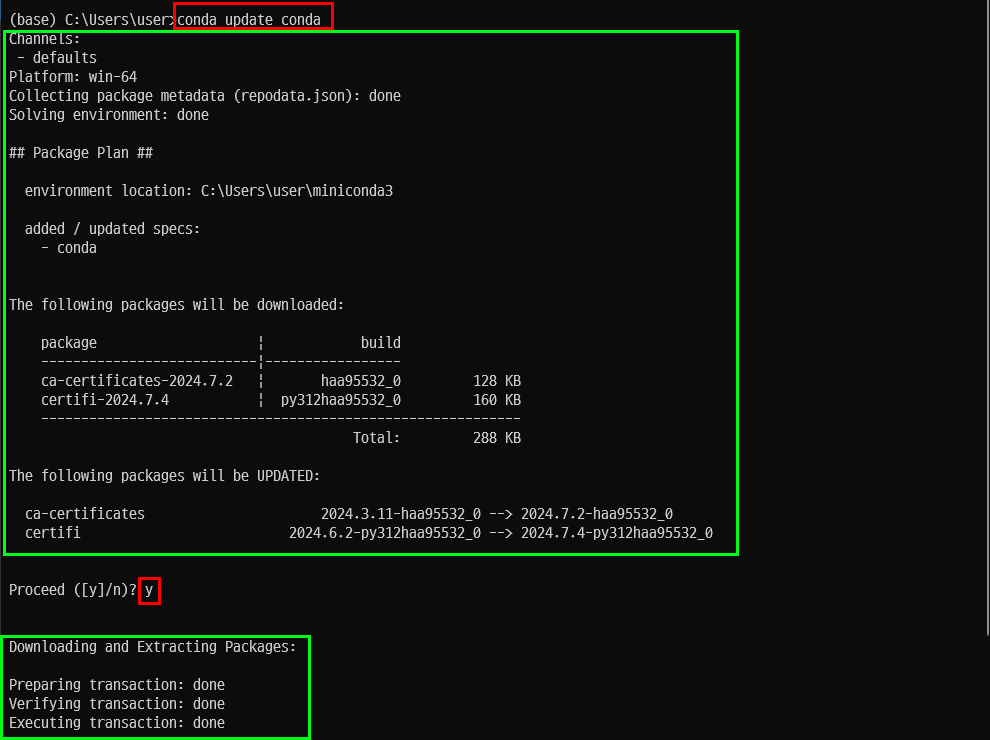3.1. Miniconda를 사용하여 새 Python 환경 생성