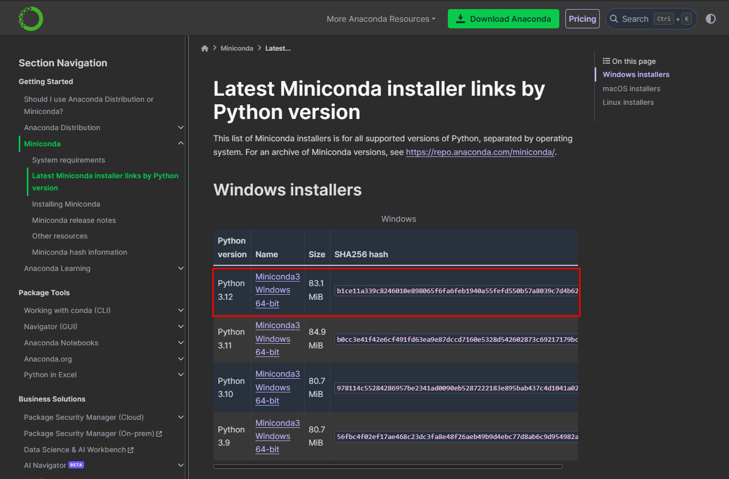 Latest Miniconda installer links by Python version — Anaconda documentation