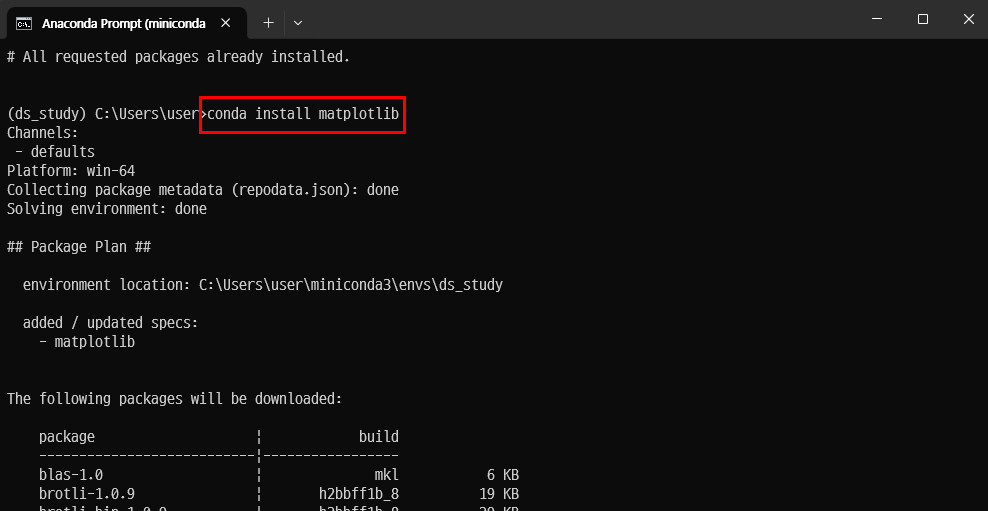 conda install matplotlib